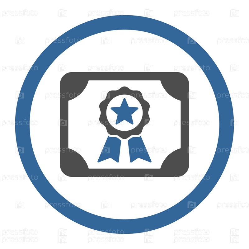 Сертификат плоский кобальта и округлые глиф значок серого цвета