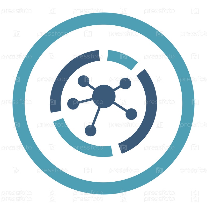 Схема соединения плоских голубой и синий цвета округлые глиф значок