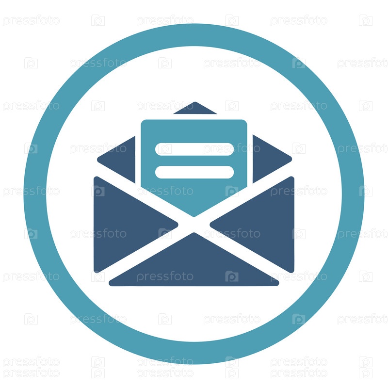 Открытие почты плоский голубой и синий цвета округлые глиф значок