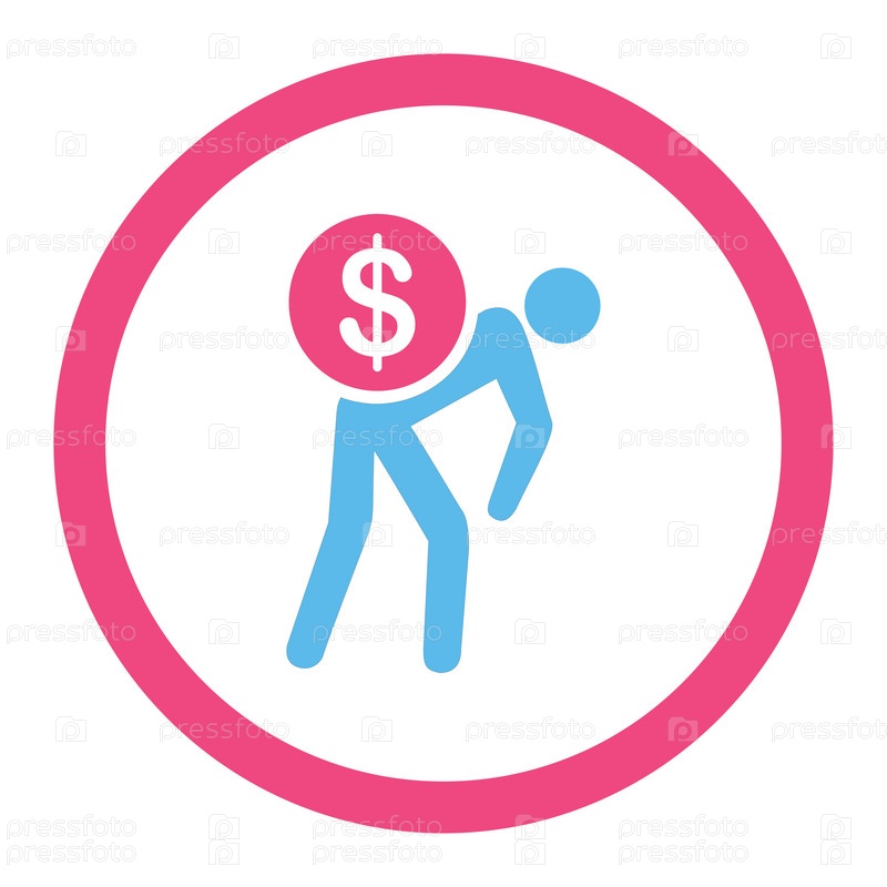 Деньги курьер плоский розовый и голубой цвета округлые значок глифов