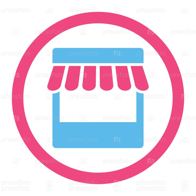 Круглый глиф значок магазина плоский розовый и синий цвета