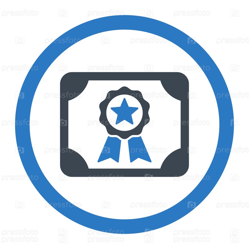 Сертификат плоские гладкие синего цвета округлые значок глифов