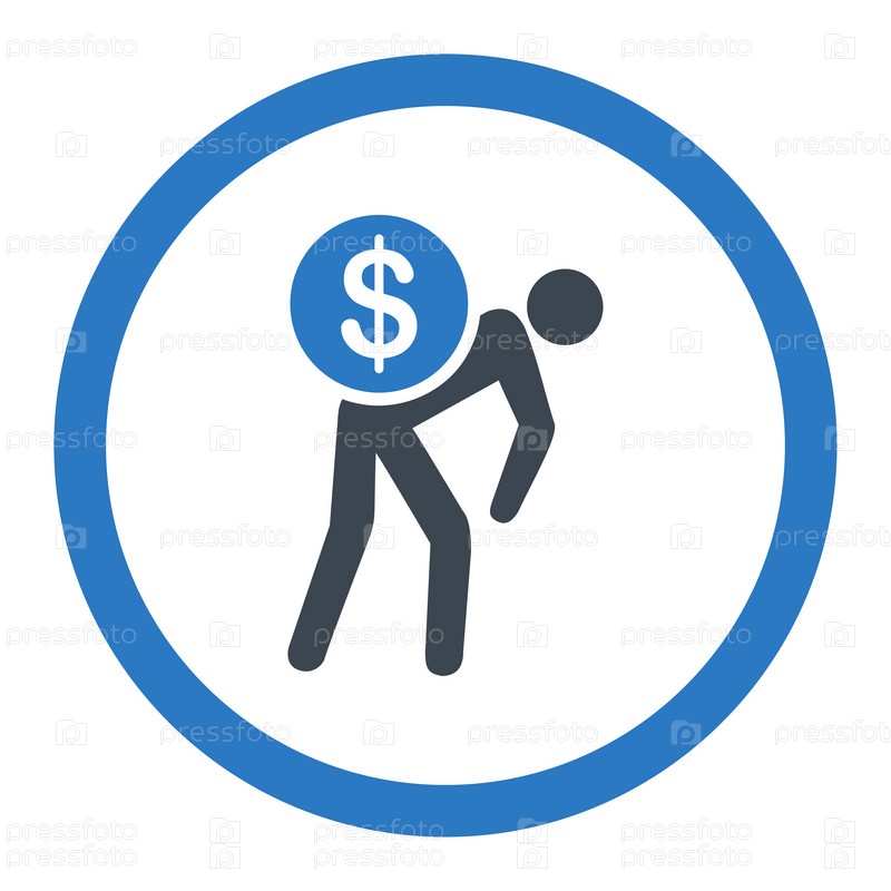 Деньги курьер плоские гладкие синего цвета округлые значок глифов