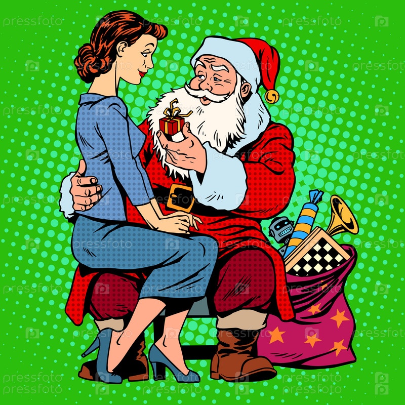 Рождественский подарок. Санта-Клаус и красивая девушка