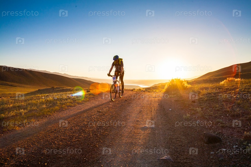 Девушка на велосипеде в лучах восходящего солнца