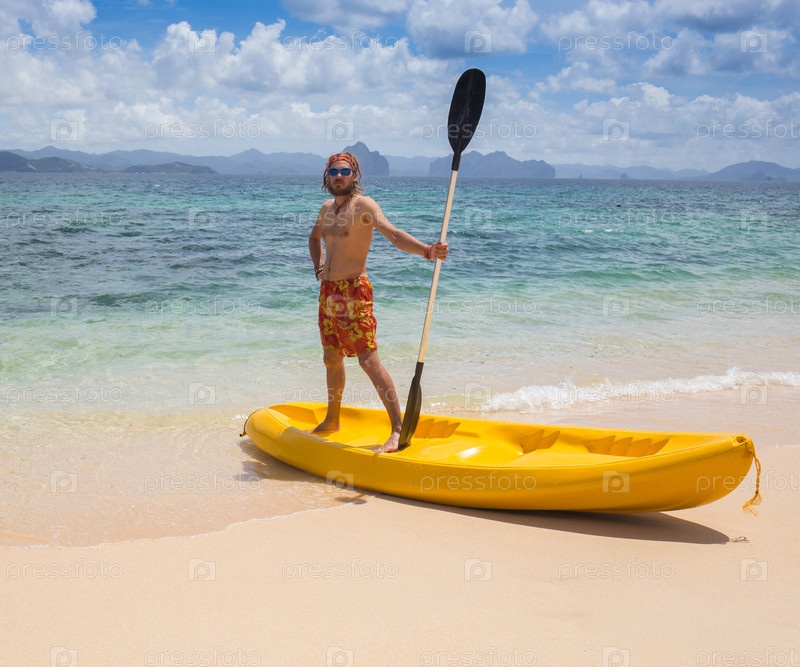 Молодые люди, гребля в каяке