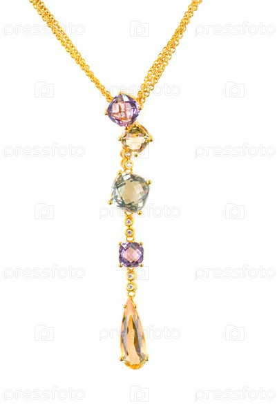 Золотой кулон с драгоценными камнями, изолирован на белом