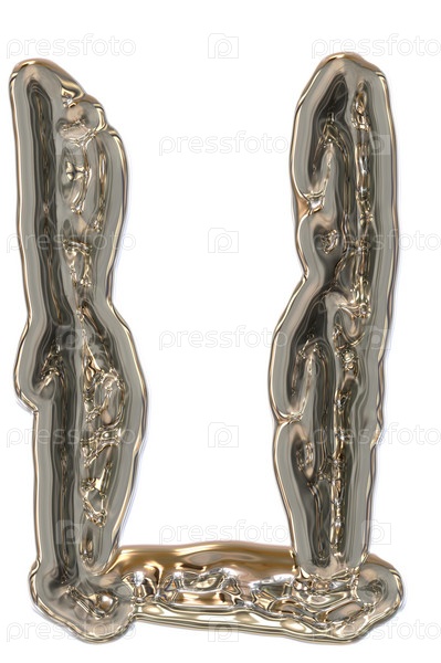 Буква 'U' из металла на белом фоне