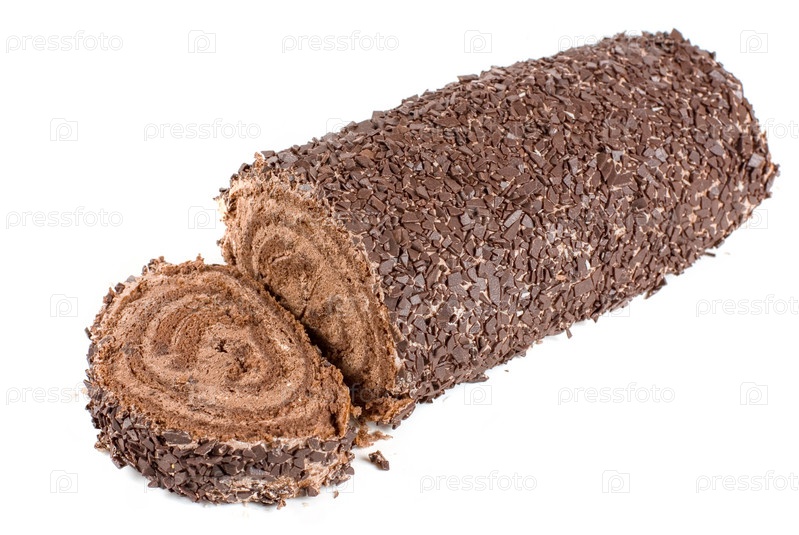 Шоколадный швейцарский рулет крупным планом, изолирован на белом фоне