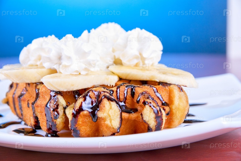 Венские вафли с бананом крупным планом