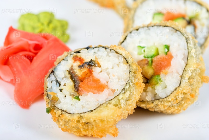 Суши на тарелке, изолированы на белом