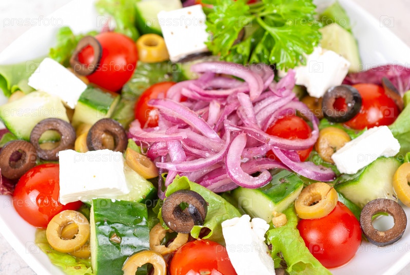 Греческий салат на тарелке