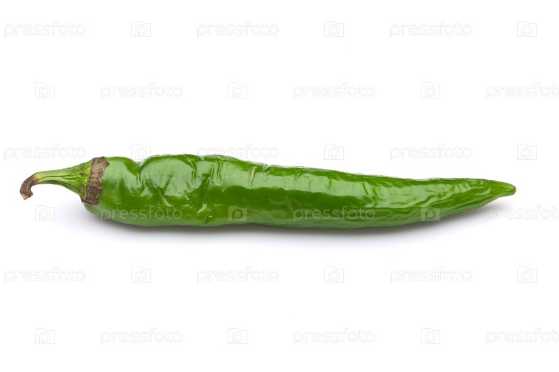 Стручок зеленого перца чили на белом фоне