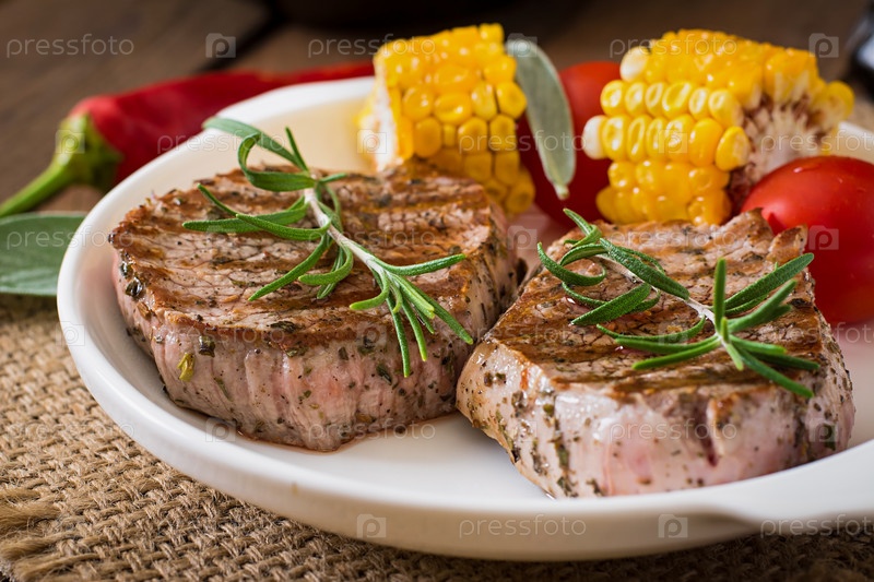 Мясо на гриле с овощами