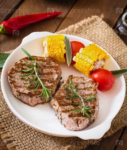 Мясо на гриле с овощами