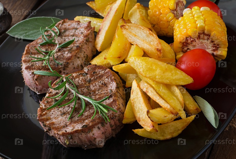 Мясо на гриле с печеным картофелем