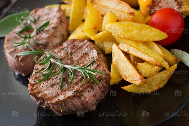 Мясо на гриле с печеным картофелем
