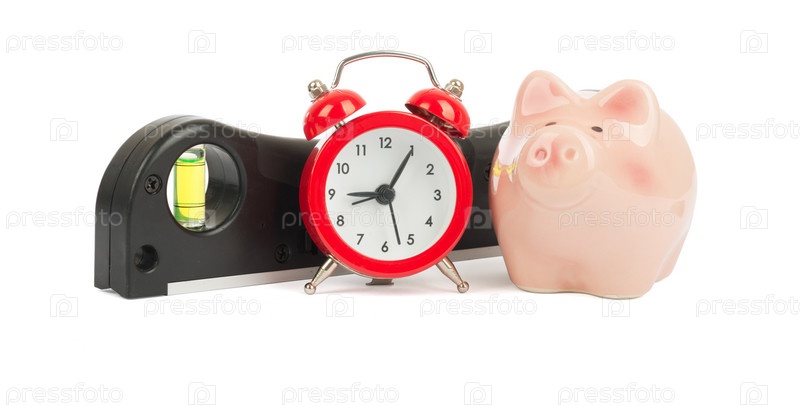 Уровень, будильник и копилка-свинка