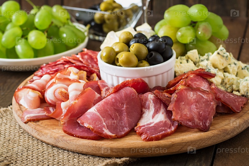 Ветчина, салями, сыр, виноград и оливки