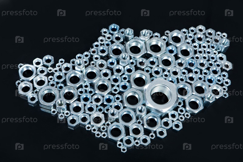 Железные гайки на черном стекле