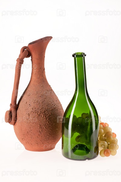 Кувшин, бутылка и виноград