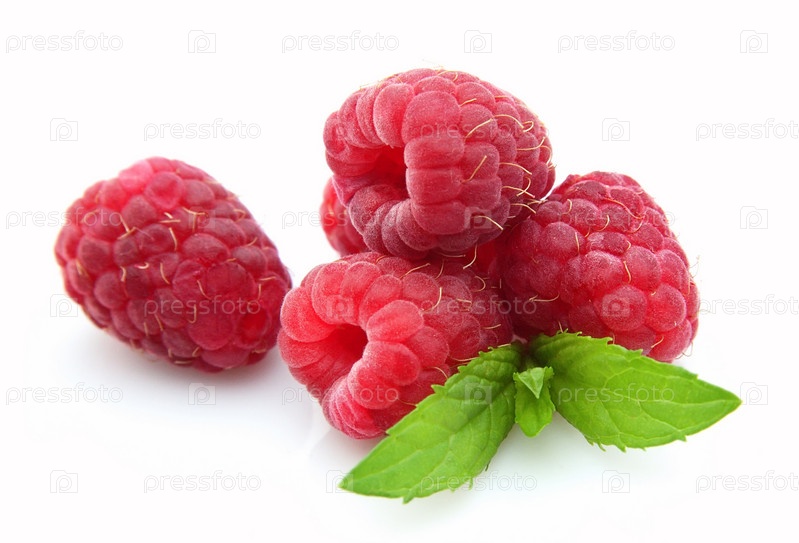 Спелые ягоды малины с мятой
