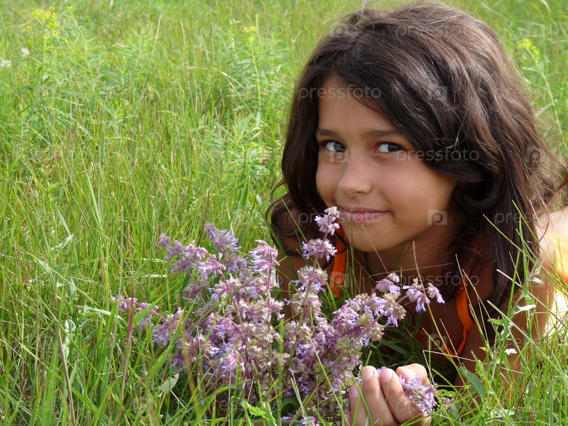 Портрет девочки с букетом полевых цветов