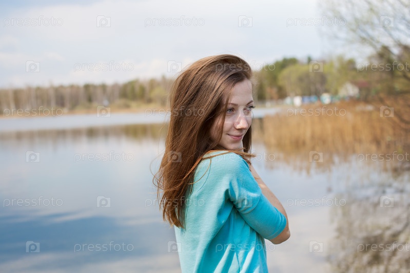 Веснушчатый счастливая девушка глядя