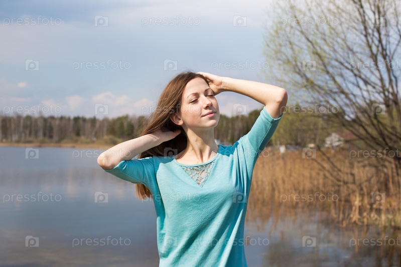 Веснушчатый счастливая девушка с закрытыми глазами