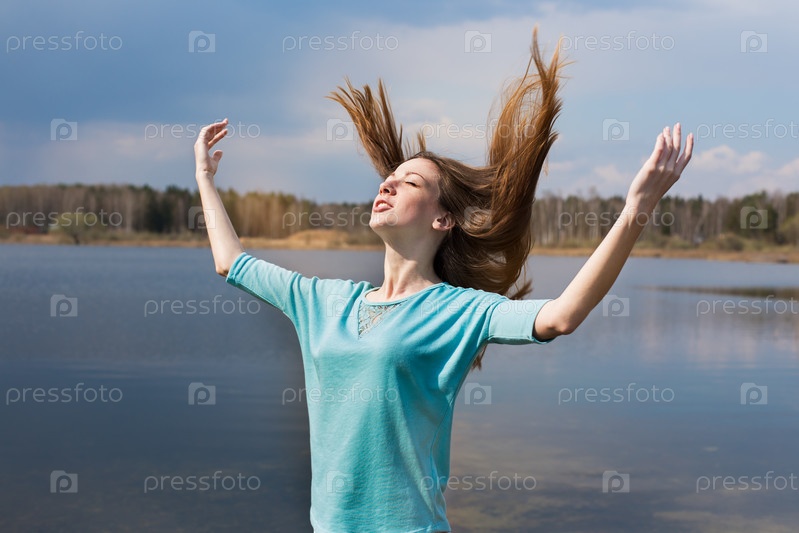 Веснушчатый счастливая девушка с закрытыми глазами