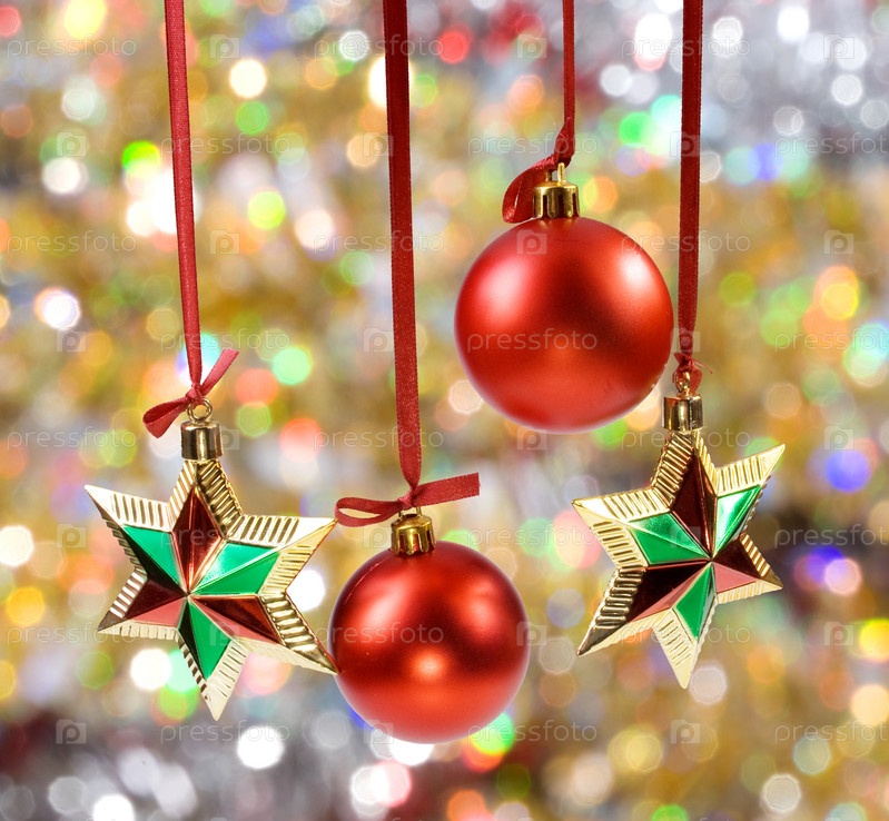 Новогодние украшениями на блестящем фоне