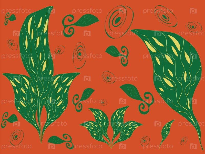 Абстрактный фон с извилистыми растениями и листочками
