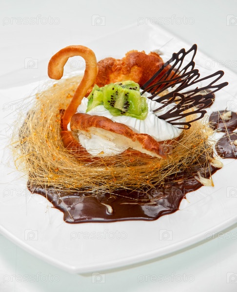 Сладкий пирог в форме лебедя крупным планом