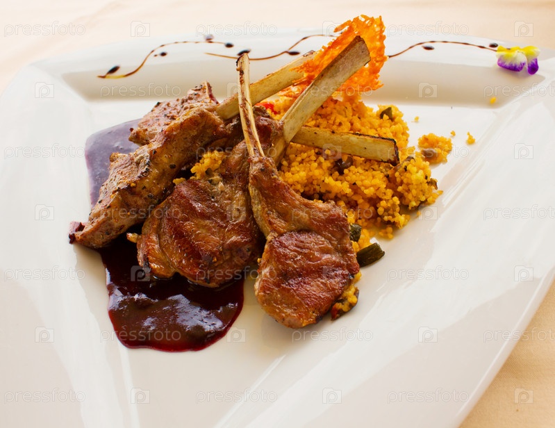 Жареные отбивные из ягненка на белой тарелке