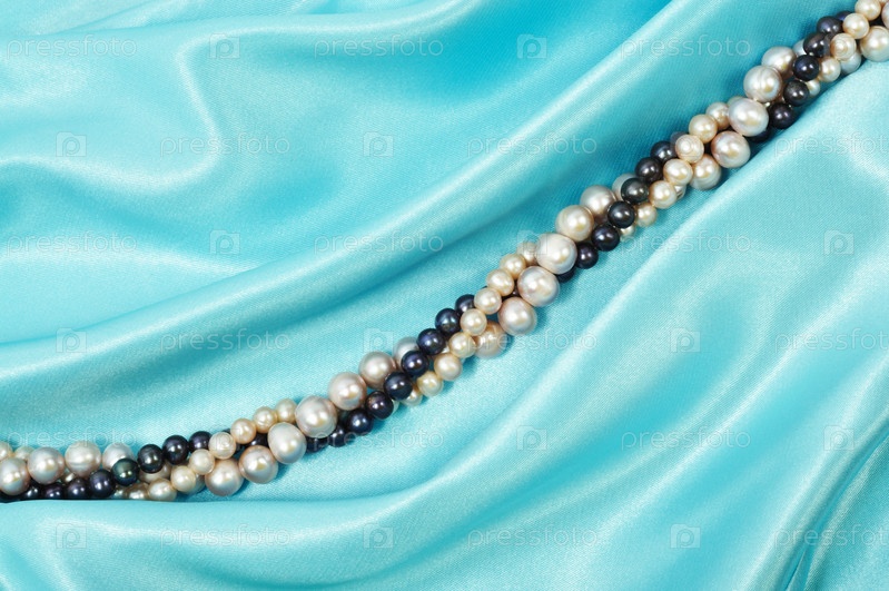 Жемчужное ожерелье на голубом шелке