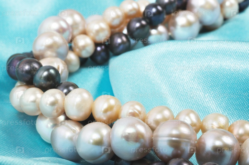Жемчужное ожерелье на голубом шелке
