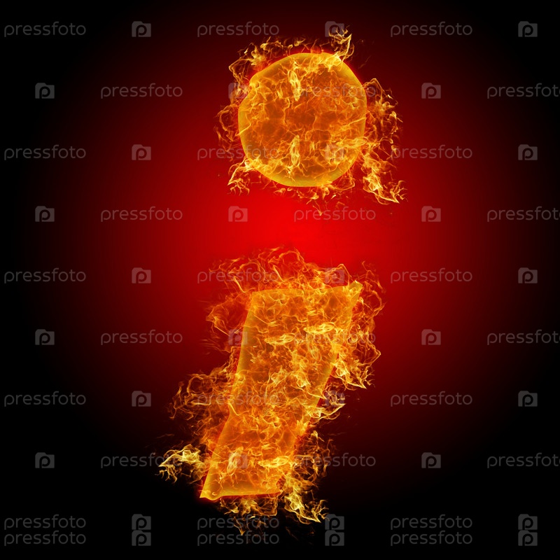 Огненный знак пунктуации - точка с запятой - на черном фоне