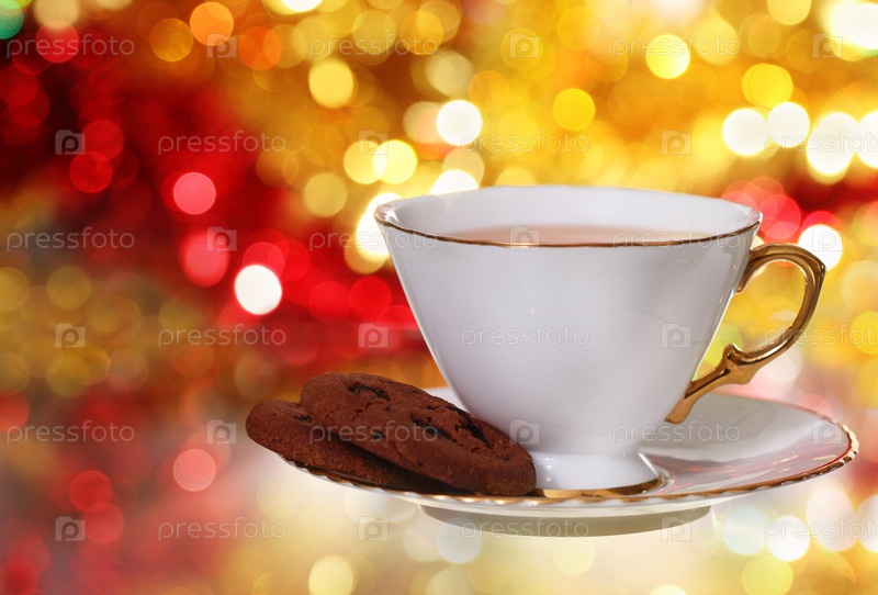 Чай и печенье на ярком фоне