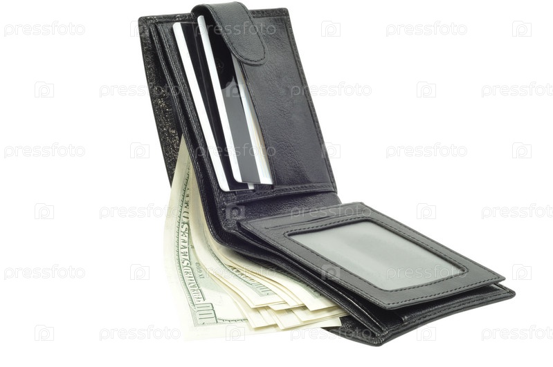 Доллары в бумажнике на белом фоне