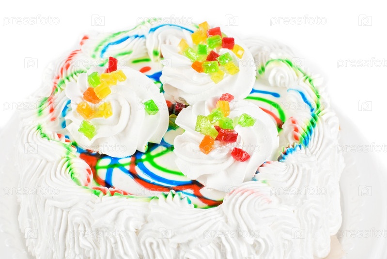 Вкусный торт на белом фоне