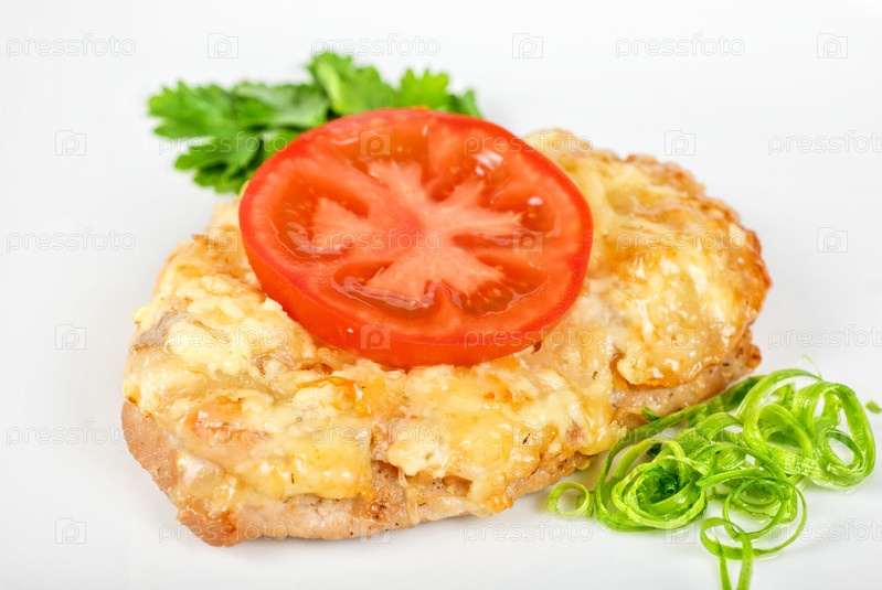 Стейк из свинины с сыром и помидорами