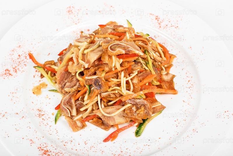 Салат со свининой на белом фоне