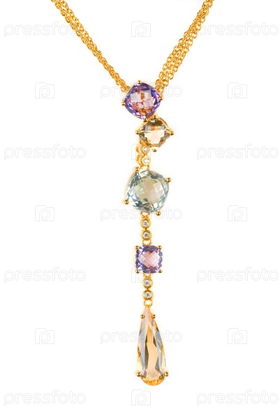 Золотой кулон с драгоценными камнями на белом фоне