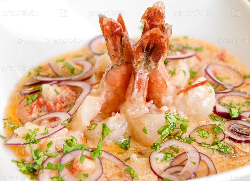 Королевские креветки с овощами в сливочном соусе