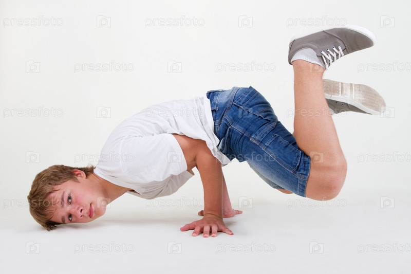 Молодой современный танцор на белом фоне