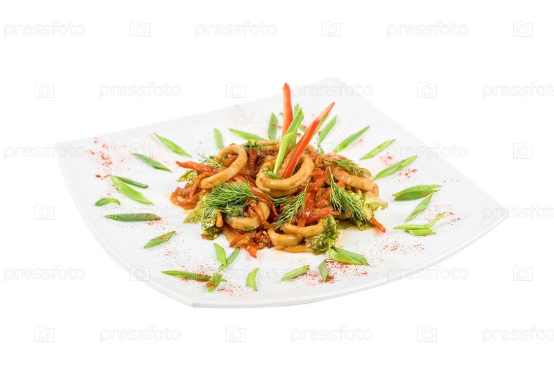 Салат с кальмарами и овощами