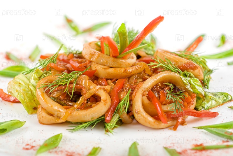 Салат с кальмарами и овощами
