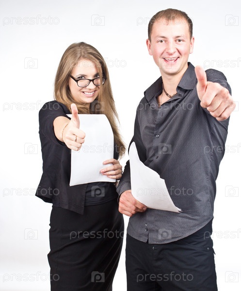Успешные молодые люди показывают жестами "Ок"