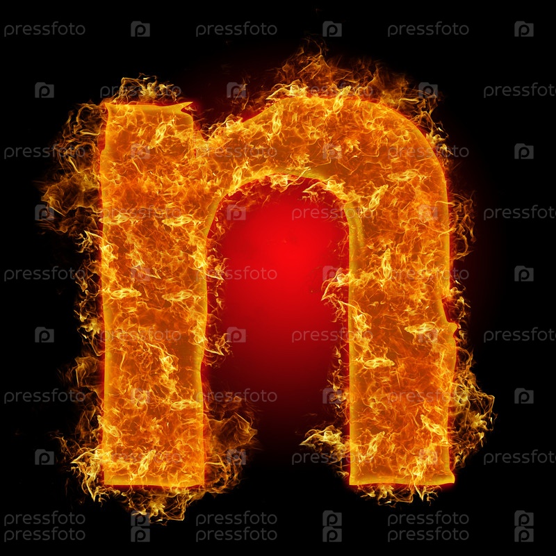 Огненная буква n на черном фоне