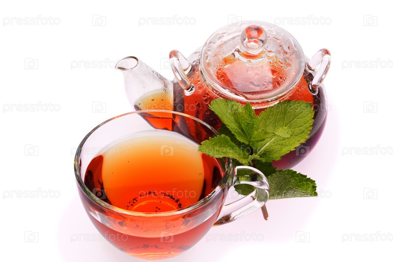 Чашка с чаем и чайник с мятой